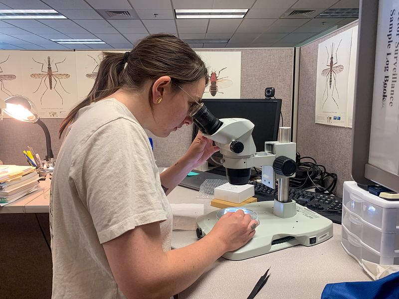 Culex tarsalis female under the microscope